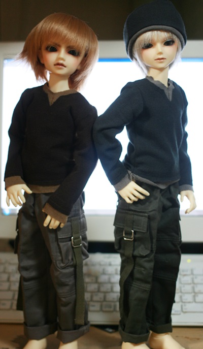 ロング脚だと普通なのですが普通脚だと丈が余ってしまいます。でも、片方だけ…は可哀相なので2人ともロールアップにしました。